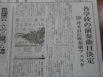 10月6日(土)に裾野市民文化センターで、吹奏楽フェスティバルが開催されます。本校の吹奏楽部も参加します。「ドラエもん」「ラジオ体操第一」「彼こそが海賊」の3曲を演奏します。