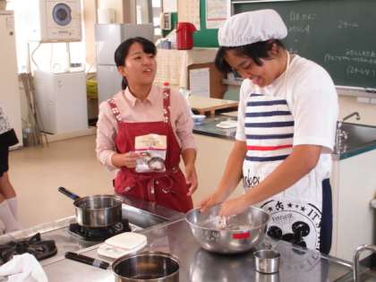 家庭科の授業では、白玉だんごを作っています。