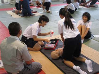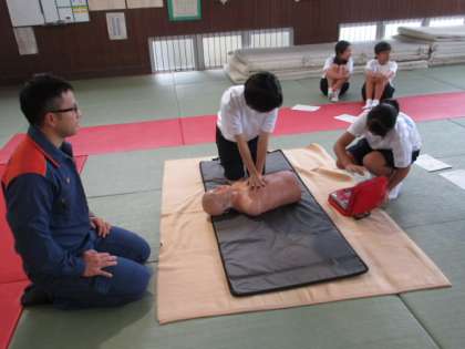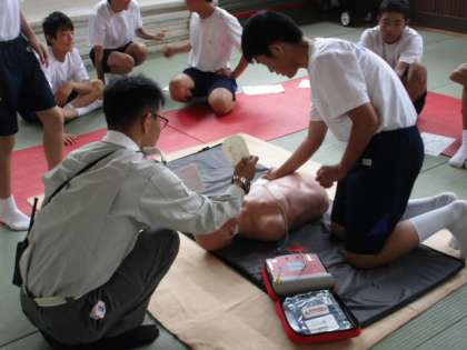 昨日に引き続き、救急救命講習です。実際にAEDの使い方も勉強しました。