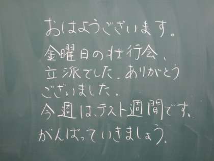 中間テストもあと4日に迫りました。テスト計画表を見ると、かなり勉強をしているお子さんもたくさんいます。