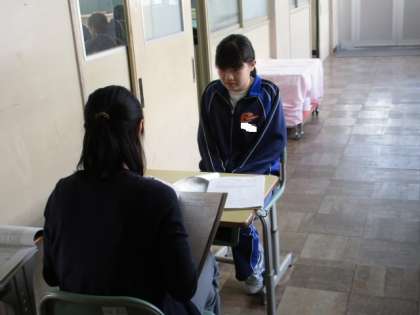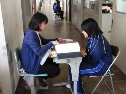1時間目の学級活動は、進路についてです。二者面談を行っています。