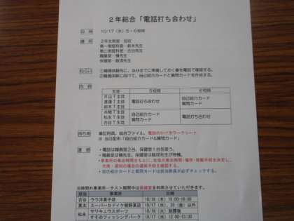 明日、10月17日(水)第5〜6時間目を使い、職場体験先に、電話をして当日の打ち合わせを行います。事前に、電話のかけ方について、事前学習をしています。