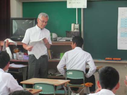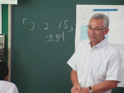 「3 2 15」の呼吸の法則の話をして生徒の緊張を静めます。