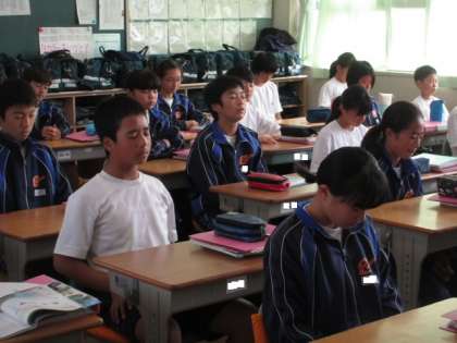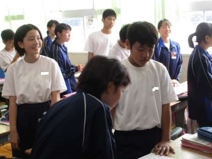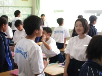 1年生の英語の授業風景です。本日、「学びの森」の指導員さんと市教育委員会の指導主事さんが授業参観に来られました。