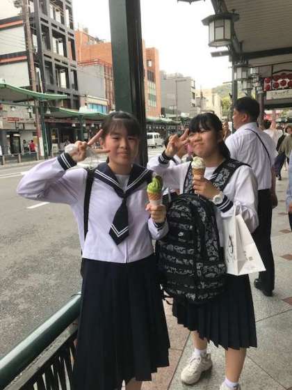 今日の京都は昨日と違い、風が涼しく、通り雨もありました。でも、みんな元気に楽しんでいます。