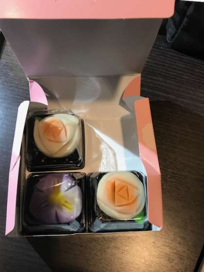 しおりの記入の様子を見に行ったら、今日の和菓子体験の作品を見せてくれました。