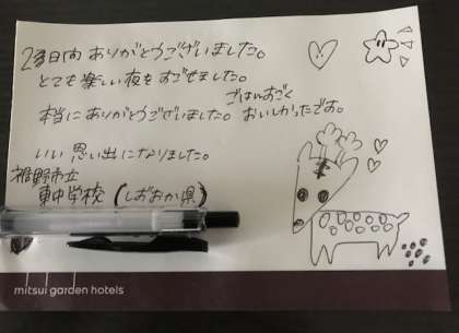 三年生が後にした部屋には、ホテルの方にお礼の手紙が残されていました。