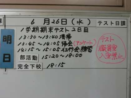 いよいよ、今日・明日期末テストです。