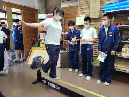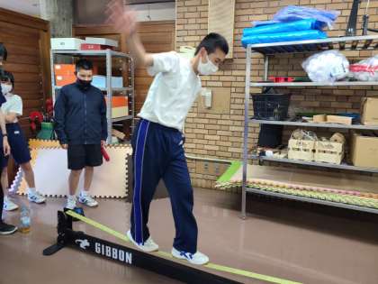 時間よりも早く集合したメンバーでスラックラインにチャレンジしました