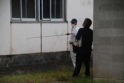 本日、外壁点検のため業者の方々が御来校くださり、外壁の様子を入念に行ってくださいました。このように、日々、学校の安全を見守ってくださる人たちがいます。