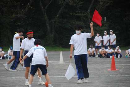 本日第6時間目相当で、東雲祭に向けての第1回合同練習が行われました。来週の天候が思わしくありませんので、急遽体育の部の練習に入れ替えました。主に係り活動の確認が行われましたが、デモンストレーションとは言え、砂埃が舞うほどの白熱したシーンが見られました。