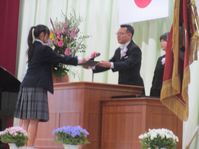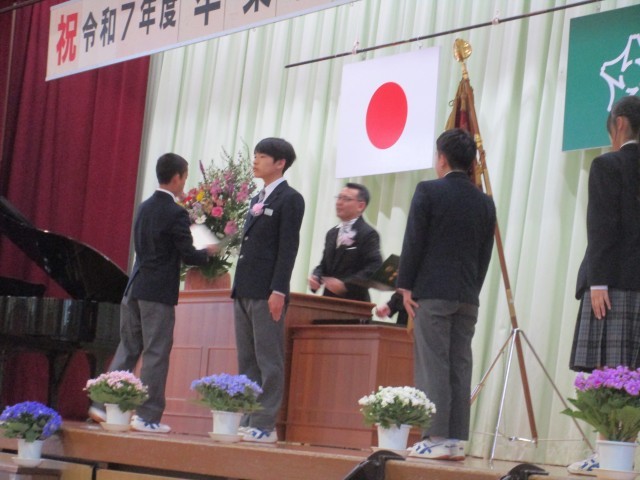 3月19日(木)に卒業証書授与式を行いました。今年度は、123人の3年生が卒業しました。卒業証書をもらっている3年生一人一人の姿を見て、私たち教職員も3年間の日々を思い出し、成長や卒業の喜びを感じることができました。義務教育を終え、人生はこれからが本番です。中学校での思い出や仲間との絆を胸に、これからは自分の力で未来を拓いていくことを期待しています。