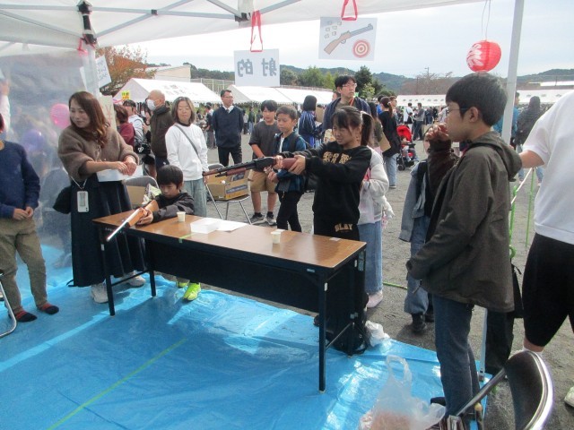 東中と東小のPTAが連携して共同出店した射的と輪投げのお店は、東中生のボランティアが大活躍していました。子ども食堂のブースでも、東中生がボランティアとして活動してくれました。