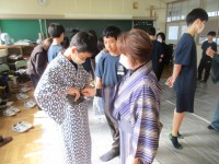 1年生の家庭科で、地域の方が講師となり、浴衣の着付けを教えていただきました。初めて浴衣を着た生徒も多く、帯の結び方に苦戦してましたが、いざ着てみると姿勢がよくなり、かっこよく着こなしていました。着物を...