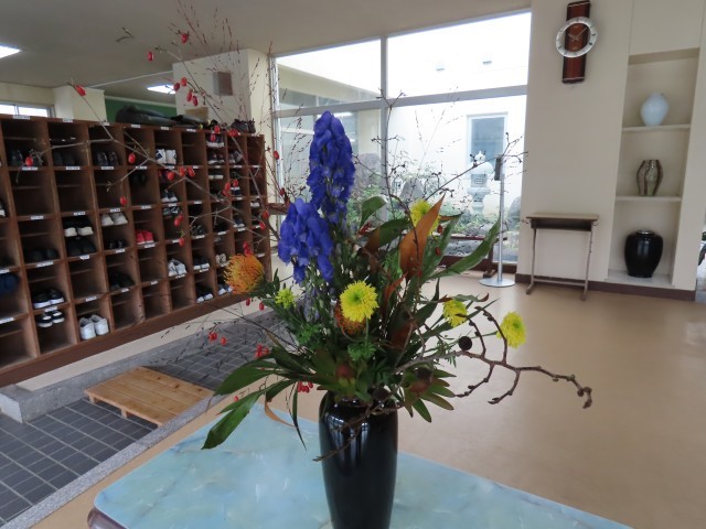 秋のフラワーアレンジメントを地域の方に作っていただきました。