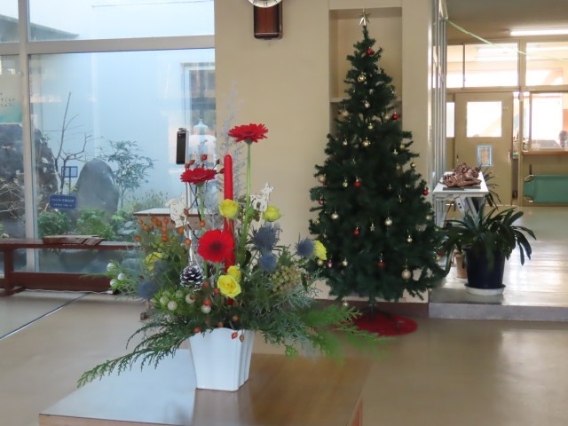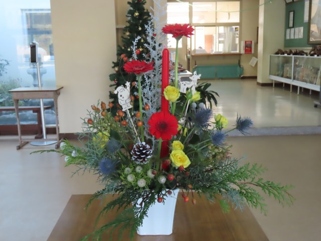 クリスマスのフラワーアレンジメントを制作してくださいました。