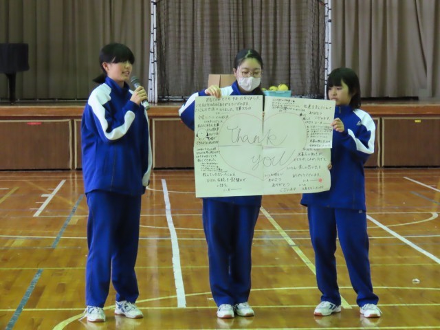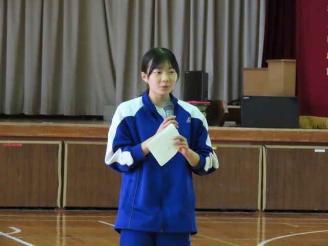 生徒会長から「三年生に楽しんでもらえる会にしたい。これからの深良中を安心して1・2年生に任せてもらえるような会にしたい。」と話がありました。