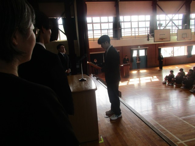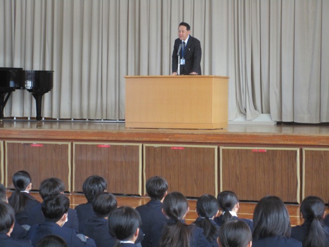 始業式では、校長先生から生徒たちに、『言われたことをやるのではなく、「自分で考えて行動する人(=PLAYER)」』になってほしいというお話がありました。代表生徒からは、一年間の抱負や先輩から学んだこと、楽しみにしていることなどが発表されました。