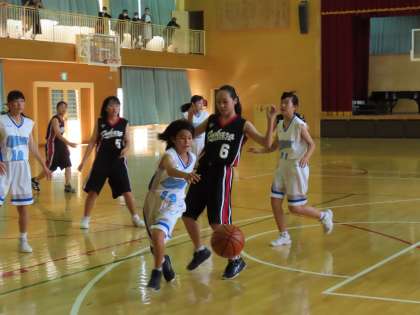 写真上:ドリブルで相手チームのディフェンスを切り裂きます