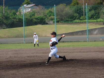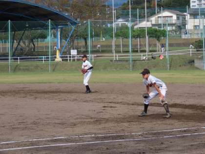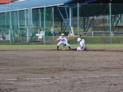 写真下:キャッチャーの強肩により、相手の盗塁をみごと防いでアウトにしました!