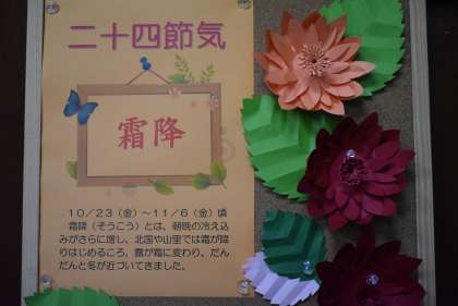 今日から二十四節気では、「霜降」に入ります。朝晩の冷え込みが増す頃ですね。