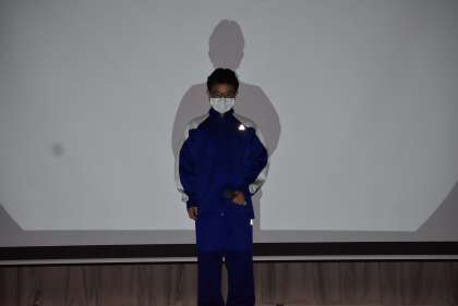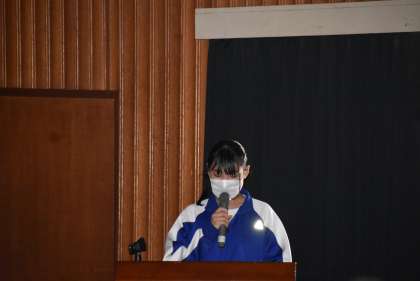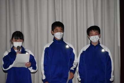 密を避けるために、3年生だけ体育館に集まり、1、2年生には教室へ配信しました。