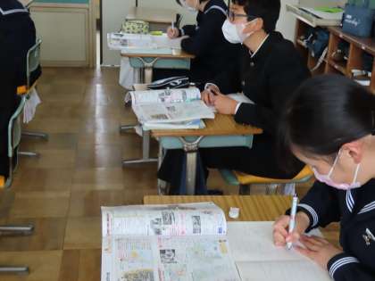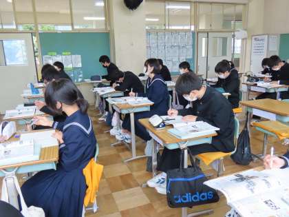 写真上、中:授業に真剣に取り組む3年生の皆さん。