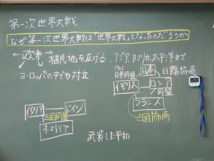 「第1次世界大戦は、なぜせかいたいせんとなったのだろう」という課題に取り組む授業を行いました。