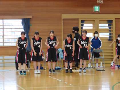 女子バスケットボール部の市内大会は、裾野西中学校で開催されました。女子バスケットボール部は部員数が少ないので、なかなか大変ですが、全員で協力しながら試合に臨んでいました。