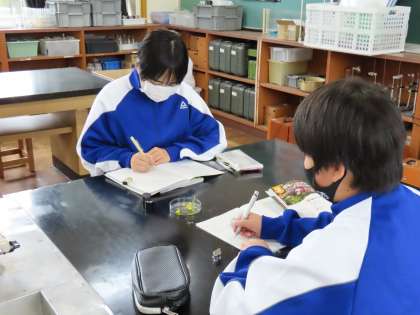 ダイコンやアブラナといった菜の花を観察し、花のつくりについて学習しました。一見色や形の異なる花でも、観察すると共通したつくりが見えてきます。今後も観察の授業が続きます。頑張ってほしいです。