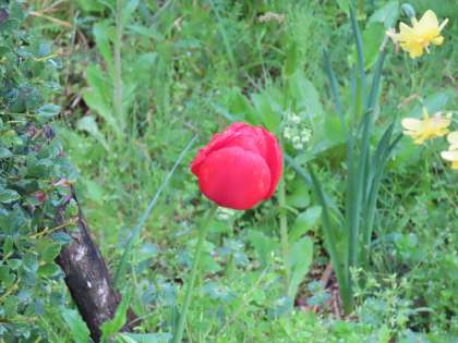 写真下:花壇に咲いているチューリップももうすぐ終わりです。
