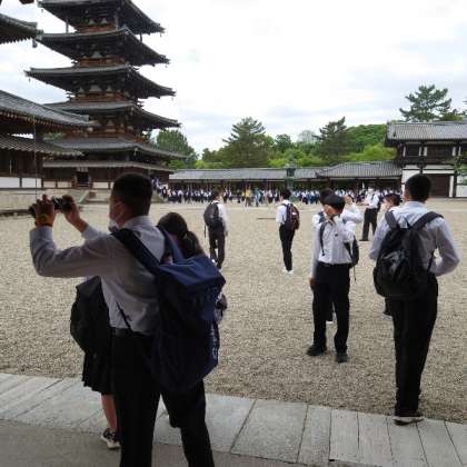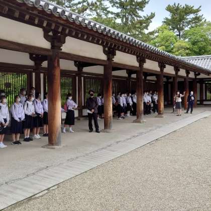 法隆寺をガイドさんの案内で、見学しました。聖徳太子のいた時代に思いを馳せていました。