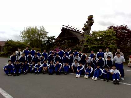 忍野八海で学年写真を撮りました。皆さん、とっても元気です。