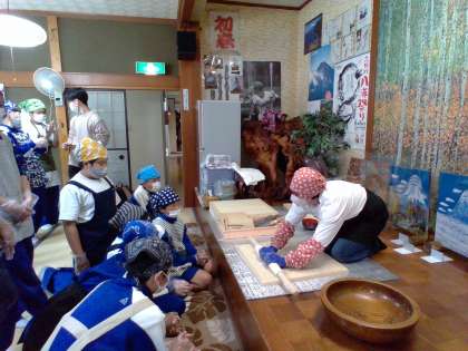 これから、自分たちの昼食である、ほうとうづくりを開始します。まずは、お手本を見学です。