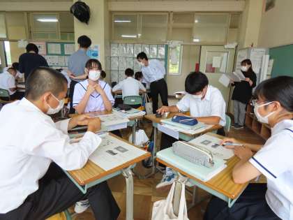 写真は、関わり合いながら問題に取り組む3年生の皆さん。