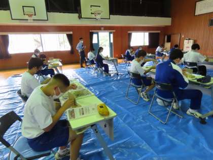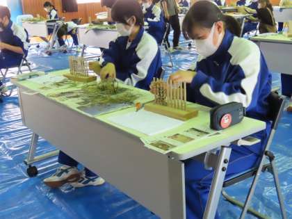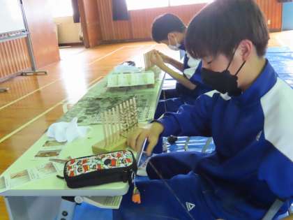 みんな集中して、世界に一つの縄文漁網を作り上げました。