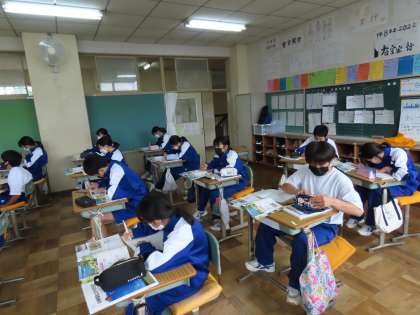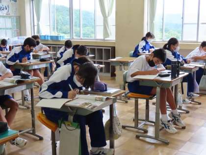 写真中、下:学習に真剣に取り組む1年生の皆さん。