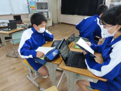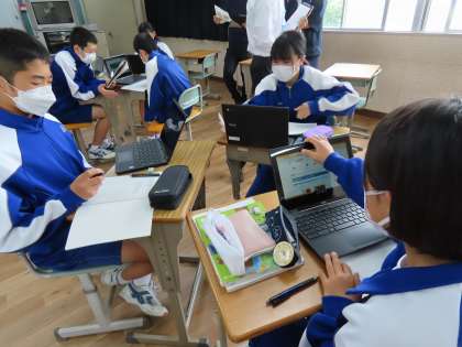 学んだことを自分自身のことに置き換えて、どんなことができるか、何が起きているのかについて学習する授業です。Chromebookを活用しながら、様々な課題に取り組むことができますね。