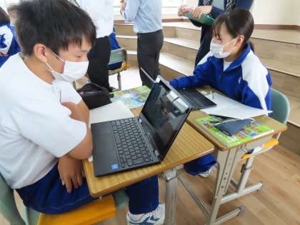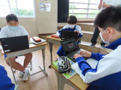 写真は、Chromebookを活用しながら、学習を進める2年生の皆さん。