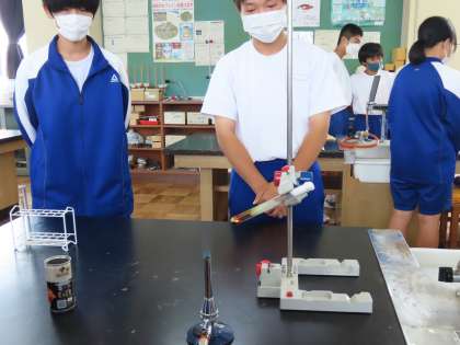 この実験では、一度反応が始まると、自ら発生した熱を利用して反応が進むので、生徒の皆さんからは驚きの声が上がっていました。