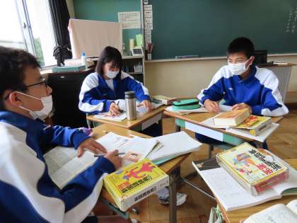 新出漢字について、関わり合いながら学習を進めました。辞書を使って調べるとともに友人と協力することで、更なる知識の習得を目指した学習になりました。