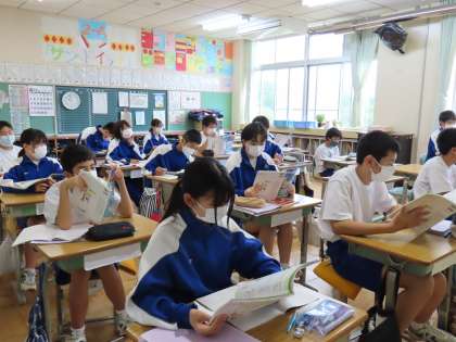 写真は、声をしっかりと出して、英文を読む2年生の皆さん。