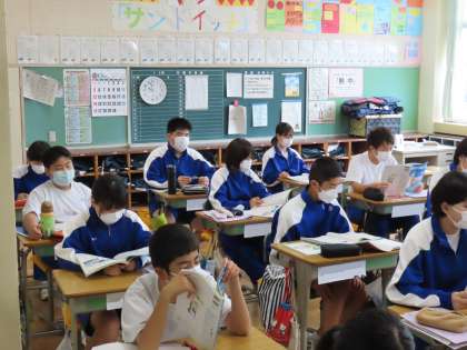教科書の英文を先生と一緒に、読み込み、発音しました。