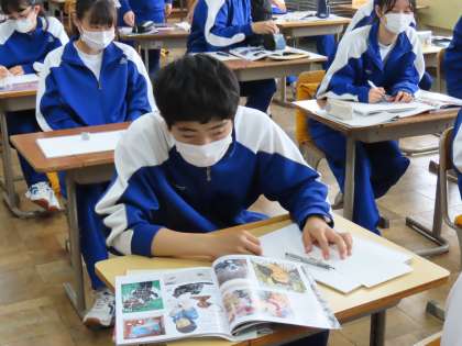 3年生の美術では、自画像の制作に入りました。より丁寧に作品を作るために、全体のバランスを考えながら絵を描いていきます。最後まで集中して作品を完成させてもらいたいですね。
