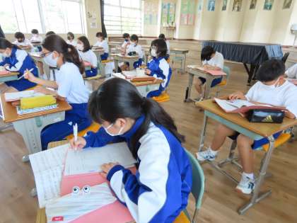 カルメン前奏曲をCDで聴き、曲想の違いを感じ取る授業を行いました。曲想の違いを感じ取った後は、その違いをそれぞれが指揮で表現するとどうなるかを、考えました。