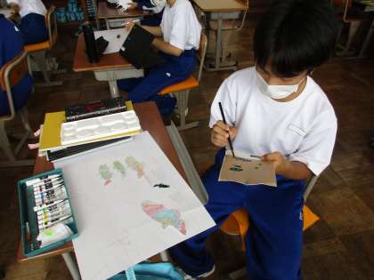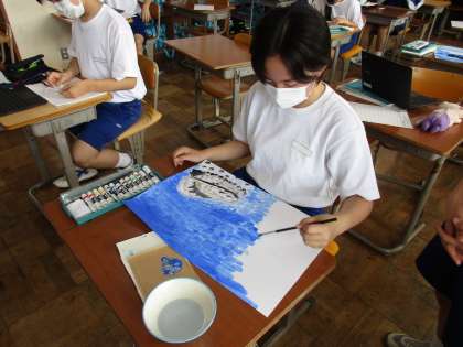 自分の想像力を生かした作品作りが、大詰めを迎えています。最後の仕上げを丁寧にという教科担任の先生の指示を守り、丁寧に作業しています。