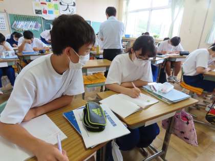 写真は、関わり合いながら問題に挑戦する3年生の皆さん。