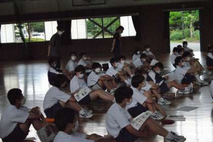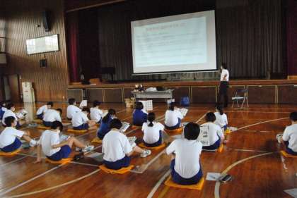 2年生は、総合的な学習の時間を使って、先週の続きとなるキャリア教育講演会に臨みました。今回は、高校の先生を招いてお話を伺いました。高校進学に向けてや、その後の進路についてどのような取組をしているのかを話してくださいました。