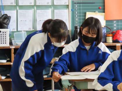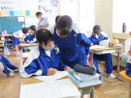 1年生も国語のテストが返却されました。その問題の中には、正解率がとても低い問題がありました。解き方や正答について、友人と相談しながら考えました。