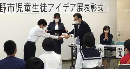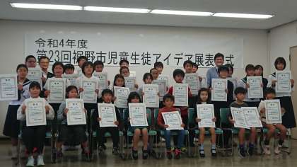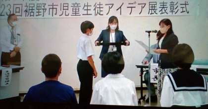 本日の午後より、裾野市役所において「令和4年度 裾野市児童生徒アイディア展表彰式」が開催されました。本校より1年生2名が表彰式に参加し、議長さんや教育長さんより賞状をいただきました。